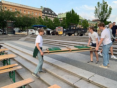Tisdag, onsdag och torsdag hade J20 och J18 fysträningen förlagd till annan plats när vi byggde bord och bänk till dels Smaka på Stockholm i Kungsträdgården, dels Nationaldagsgaloppen på Gärdet.
