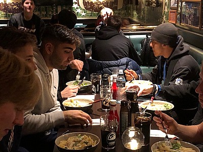 Härlig seger mot Göta Traneberg med 4-1 och söndagskvällen fortsatte med lagmiddag på OLearys Heron City. Efter maten var det nästa utmaning i Prison Island med 32 celler av olika svårighetsgrad som ska bemästras.