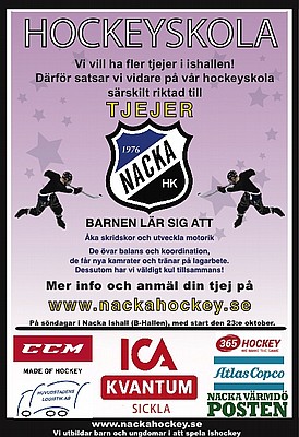 Anmälan till hockeyskolan är öppen. Vi kör tre grupper i år, en Nybörjargrupp och en Fortsättningsgrupp vilka båda är öppna för alla barn. Då vi vill ha fler tjejer som spelar ishockey och klubben jobbarnas att bygga upp en tjej-hockey verksamhet, så har vi även i år en hockeyskola särskilt riktat till tjejer.