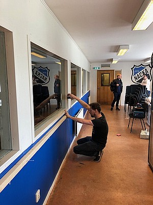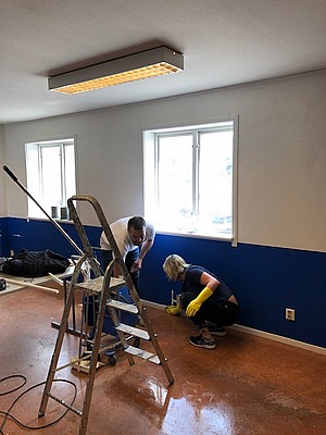Alla som vill är välkomna att hjälpa till eller bidra med material. I lördags arbetade vi hårt med städning och tvätt av väggar och tak inför målning.