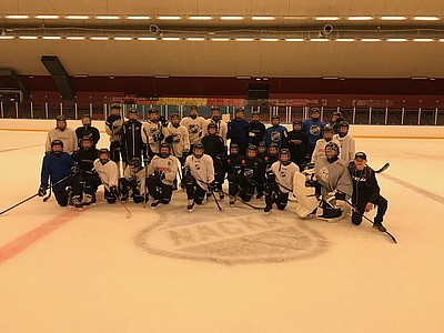 En förmiddag full av aktiviteter både på rinken i Nacka Ishall men också massor av aktiviteter utanför isen, t.ex. speedshooting och tvånudd med nr #24 Philip Nilsson Fornes.