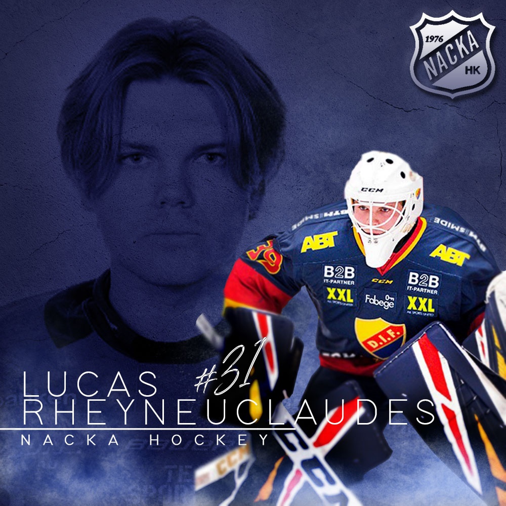 Vi bjuder på en riktig smällkaramell denna fredagskväll och presenterar ett oerhört tungt nyförvärv! Det är den unga men meriterade målvakten Lucas Rheyneuclaudes med rötter från Saltsjöbaden som valt att skriva på för Nackas A-lag. Han har klivit genom junioråren i Djurgårdens regi med oerhört bra statistik och även fått testa på landslagsspel i U17 och U19. Senast var spelplatsen i Hockeyettan i Kalix men Lucas bestämde sig för att han ville fortsätta sin utveckling på hemmaplan och vara med och ta upp Nacka till Hockeyettan, något som ska bli oerhört spännande att få se till hösten!